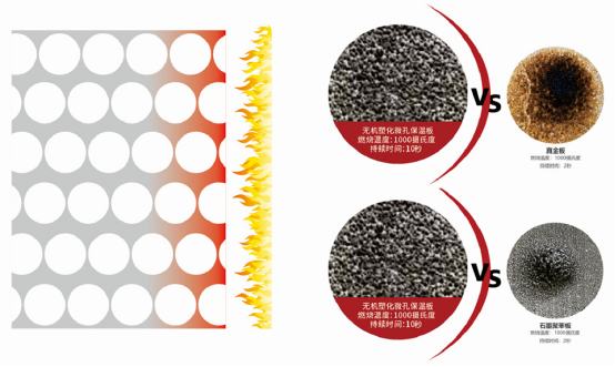 無機塑化微孔保溫板耐火極限超過3小時,過火后不粉化,整體性保持良好。