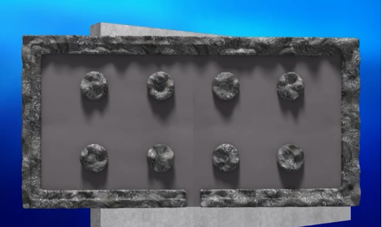 按照排版圖紙將保溫一體板進(jìn)行排版,在企口型鋁板保溫一體板背后涂抹粘接膠泥(粘接面積不低于60%),也可采用點(diǎn)框粘法,之后在墻體與一體板連接處嵌入專屬錨固件(打穿企口出三層鋁板單點(diǎn)錨固力更強(qiáng)),之后縫隙用硅酮膠收口。