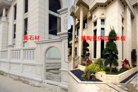 最后,從裝飾效果角度來看,薄陶瓷相對于干掛石材來說具有更好的裝飾效果。薄陶瓷可以通過模擬各種石材紋理和色彩,并且能做到石材無法擁有的光澤度使得外墻裝飾更加豐富多樣化。同時,薄陶瓷的表面光滑平整,易于清潔和維護,能夠保持長久的美觀度。這對于農村自建房來說,不僅提升了房屋的整體品質,也為居民提供了更好的居住環(huán)境。