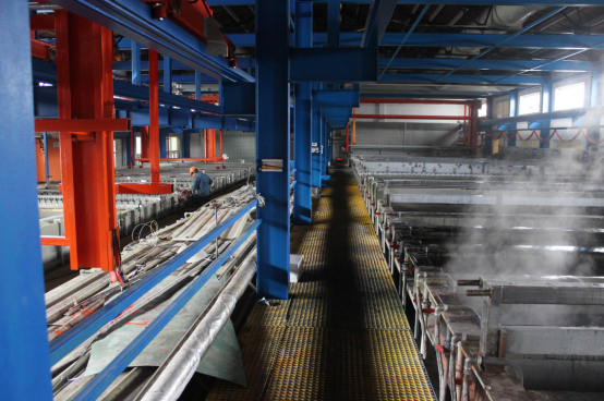 使鋁板表面生成一層致密的氧化膜,利用陽(yáng)極氧化膜的無(wú)色多孔性質(zhì),來(lái)達(dá)到染色和保護(hù)鋁基體的目的。