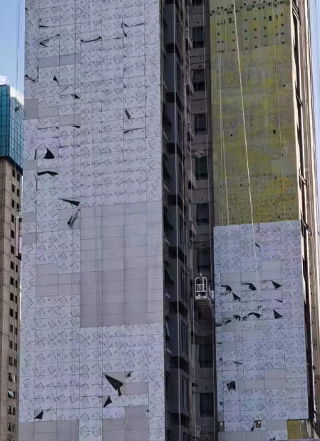 過去里面保溫層采用有機材料還好,而現(xiàn)在采用巖棉、勻質(zhì)板等材料一旦受潮,或者基層墻體滲水,一體板硅鈣板面板、底板和保溫材料吸水后經(jīng)過凍融產(chǎn)生變形、甚至材料粉化,這種問題基本難以修復,如果造成板材脫落后果不堪設想。