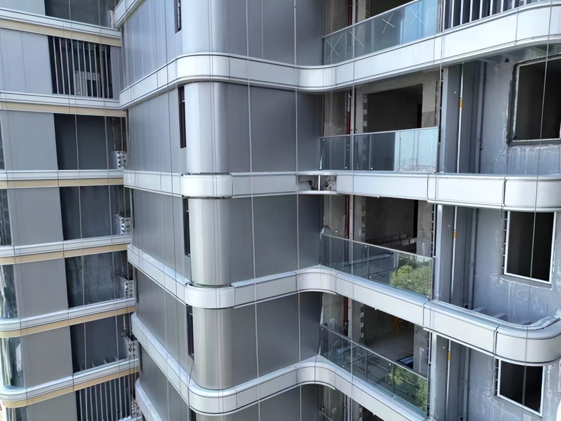 與此相比,干掛鋁板是將鋁板通過特定的安裝系統(tǒng)進行固定,形成一個獨立的外墻裝飾層。干掛鋁板擁有較好的耐久性和抗風(fēng)壓能力,適用于高層建筑。同時,干掛鋁板還可以靈活調(diào)整板材的尺寸和間隙,使建筑外觀更加整潔。以及可以根據(jù)需求進行多種形式的表面處理,如陽極氧化、噴涂等,增加了建筑物的美觀程度。
