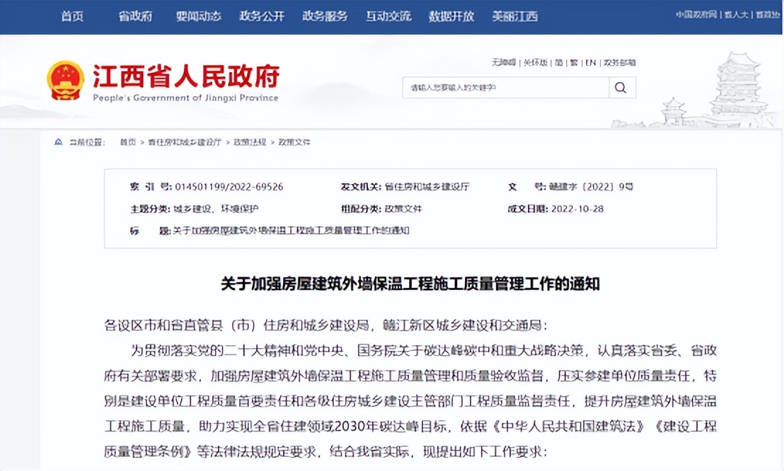 江西省關(guān)于加強(qiáng)房屋建筑外墻保溫工程施工質(zhì)量管理工作的通知