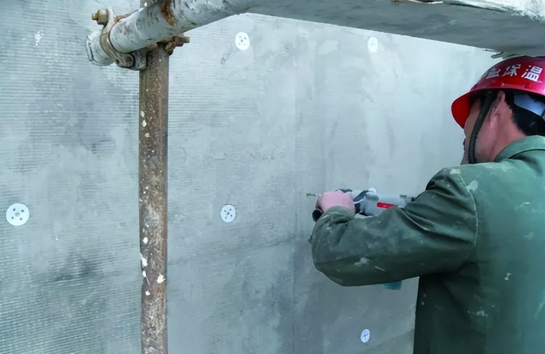 為了防止保溫材料脫落或滑動,需要在保溫材料的邊緣和中間部位加裝固定錨栓。固定錨栓的數(shù)量和位置需要嚴(yán)格按照設(shè)計要求進行確定,錨栓的安裝需要在保溫材料粘貼完畢后進行。在安裝錨栓時,需要使用電鉆在墻體上打孔,然后將錨栓插入孔中并固定牢固。